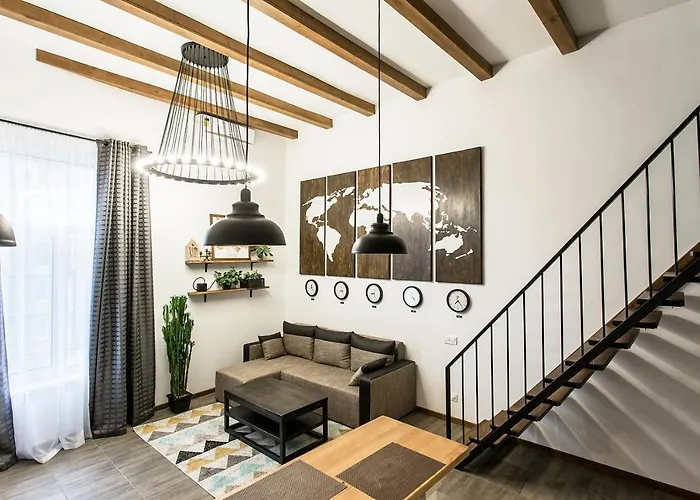 Повністю обладнана кухня укомплектована кавоваркою, а також електрочайником, холодильником і духовкою, необхідними для самостійного приготування їжі. Це помешкання розташоване в межах 8 км від залізничного вокзалу Залізничний вокзал. В околиці можна спробувати різні види активного відпочинку, зокрема боулінг.